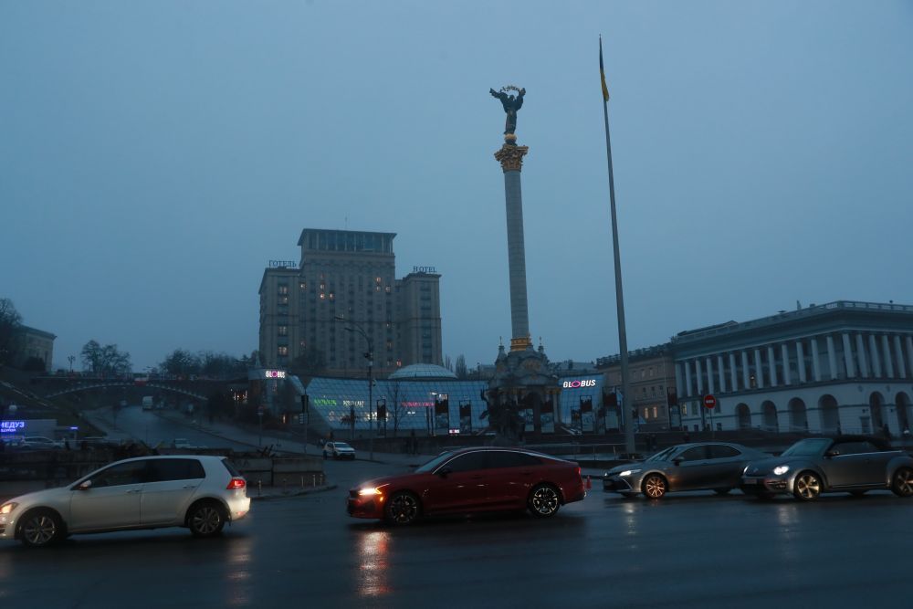 11月20日,乌克兰齐门基辅主要街说念的照明步伐出现大面积停电,车辆在暮色中驶过孤独广场。新华社记者李东旭摄